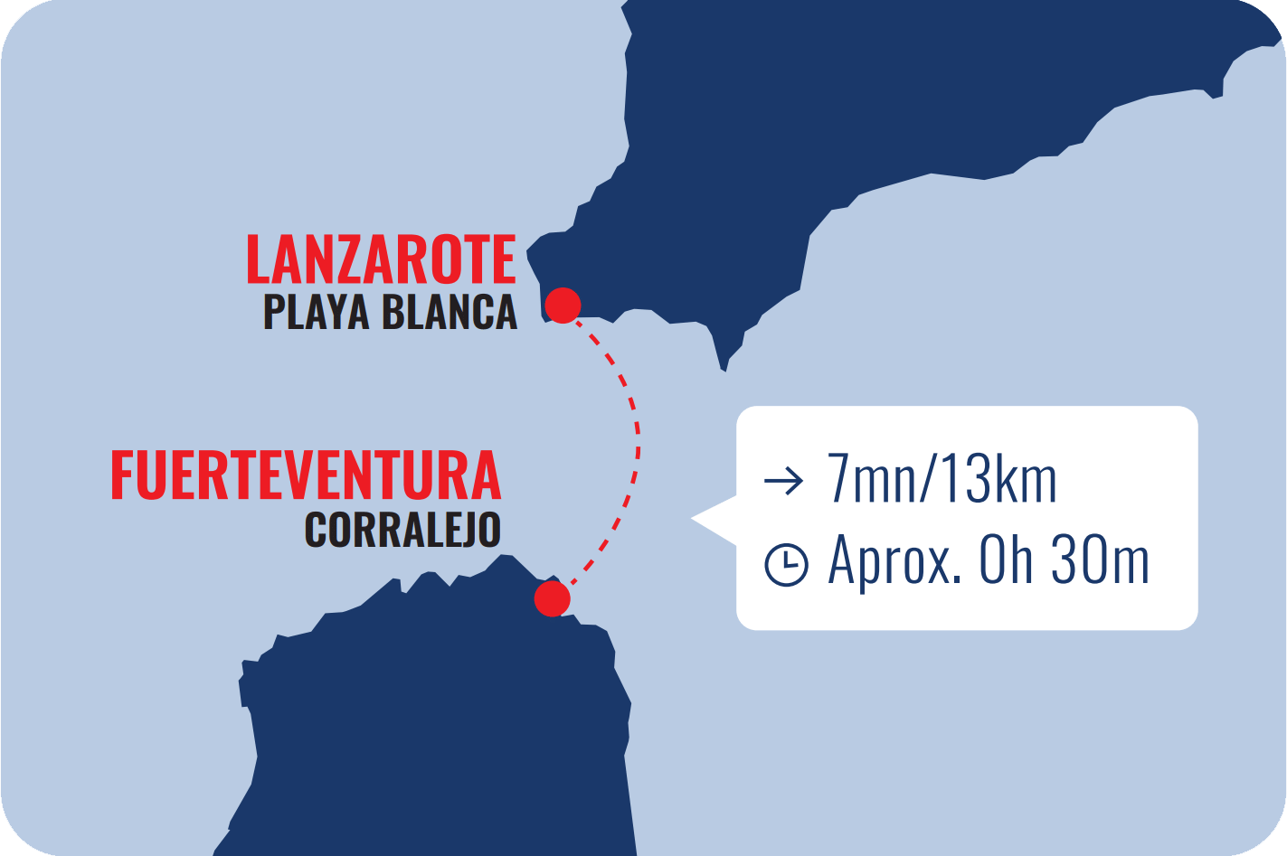 • From Lanzarote to Fuerteventura ferry timetable: 0930-1115-1230-1630-1830