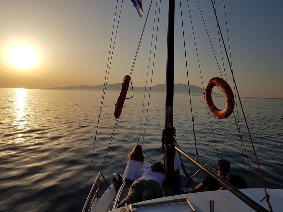Finally, enjoy drinks and snacks on-board, before setting-out on the return journey, where we relish the mesmerizing light of the sun setting over the Aegean Sea.