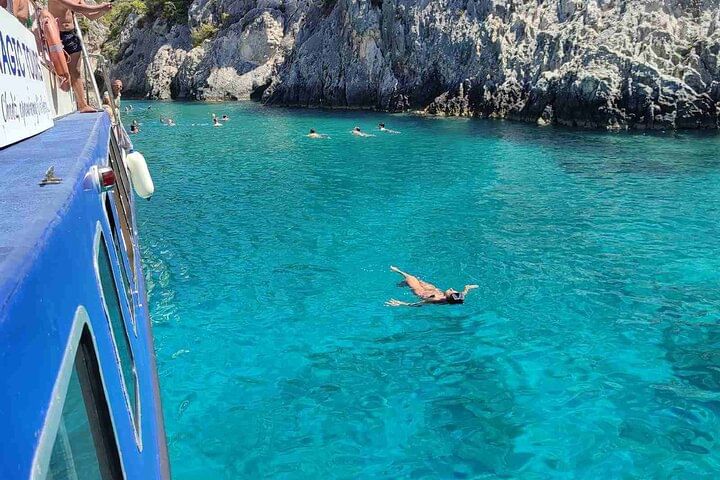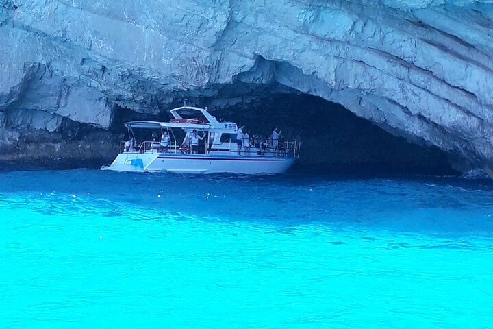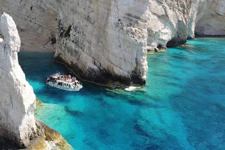 Almost 3Hrs Boat tour to Explore Navagio bay, White beach, Sfogio and West coast caves – Zakynthos West coast boat tour. Tour starts from Porto Vromi Anafonitria