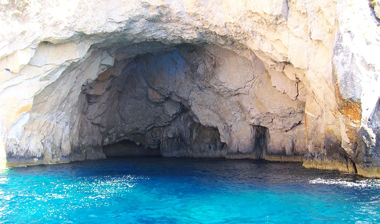 Our second stop will be at the famous Blue caves of Zakynthos. The small size of our boat will permit us to pass inside the caves for a unique experience. In the Blue caves area we will also have our second stop for swimming.
