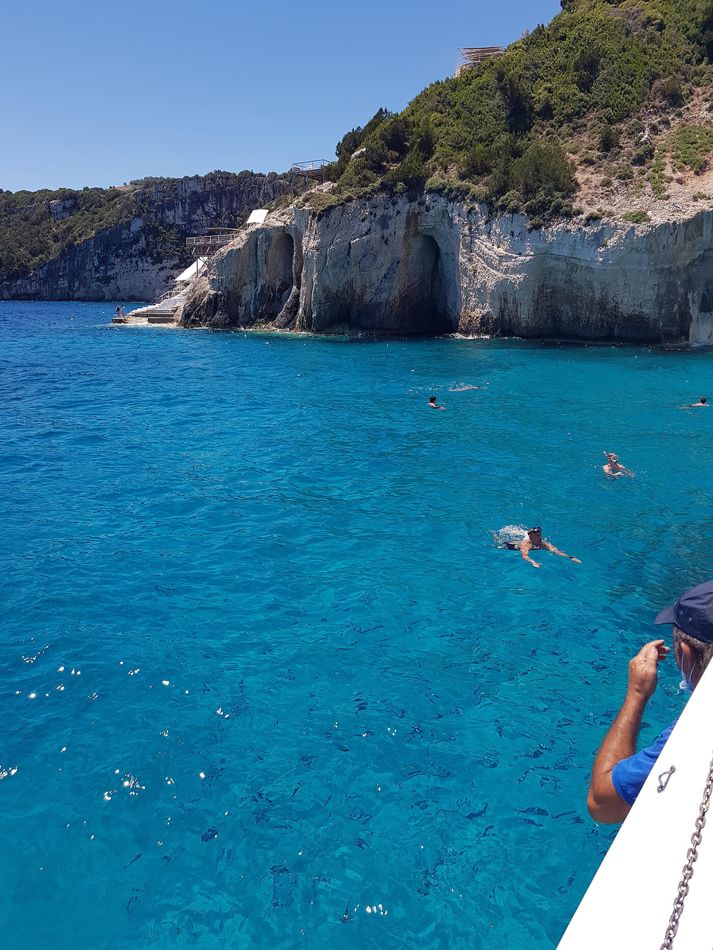 On the way back from Navagio bay we will stop for our first swim. According to the weather conditions we can stop in a wild picturesque no named bay or in Porto sellinas bay. Both spots are really unspoilt with turquoise sea water.