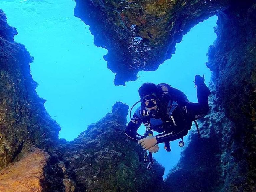 Then we will get in the boat and go to the Turtle Island! We will spot some turtles by boat and explore caves and beaches of this wonderful small island! Then we do some skills underwater in very shallow water and afterwards the dive!