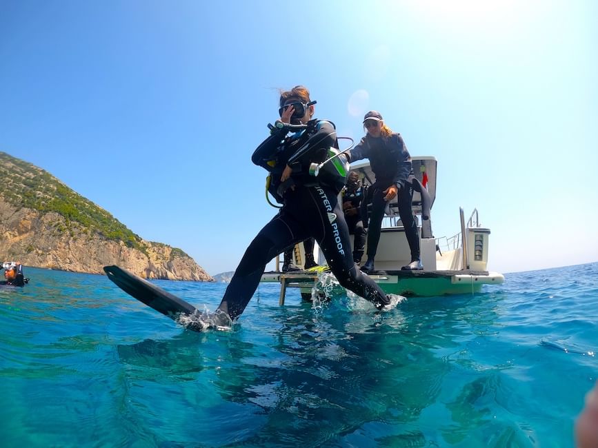 Depart from Agios Sostis port and choose a single or a double diving experience.